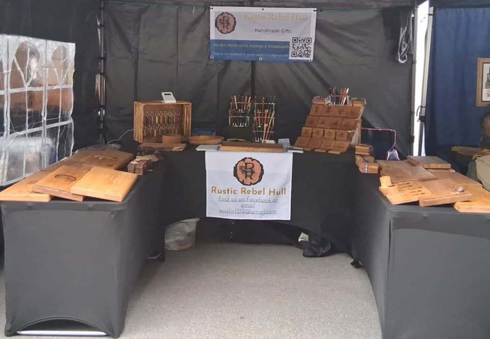 Handmade wood and acrylic pens, keyrings, bread/cheeseboards, bowls and clocks.